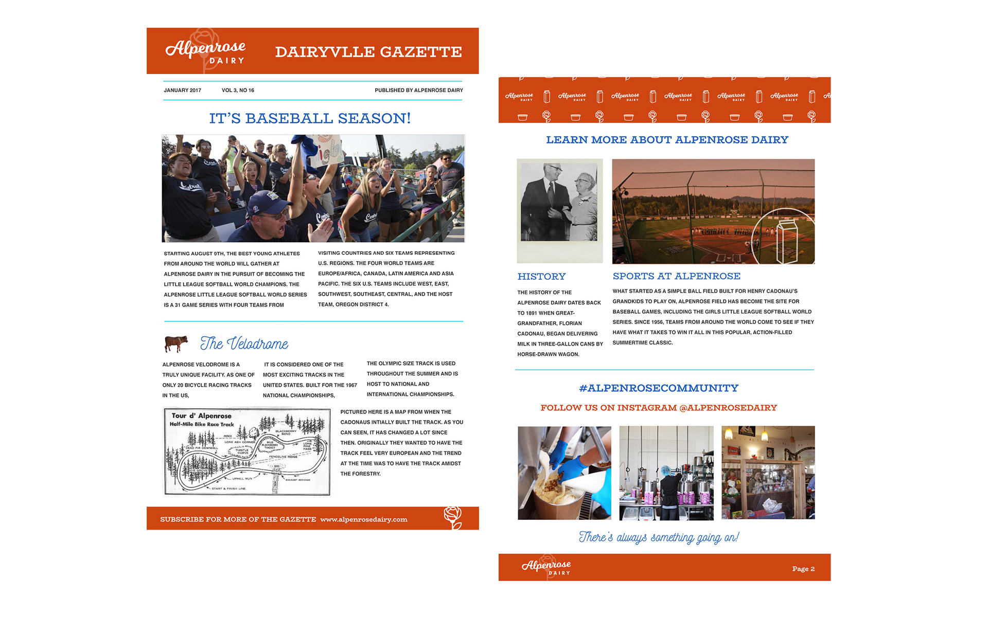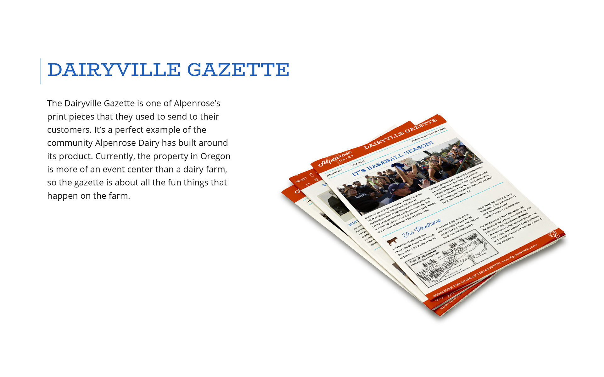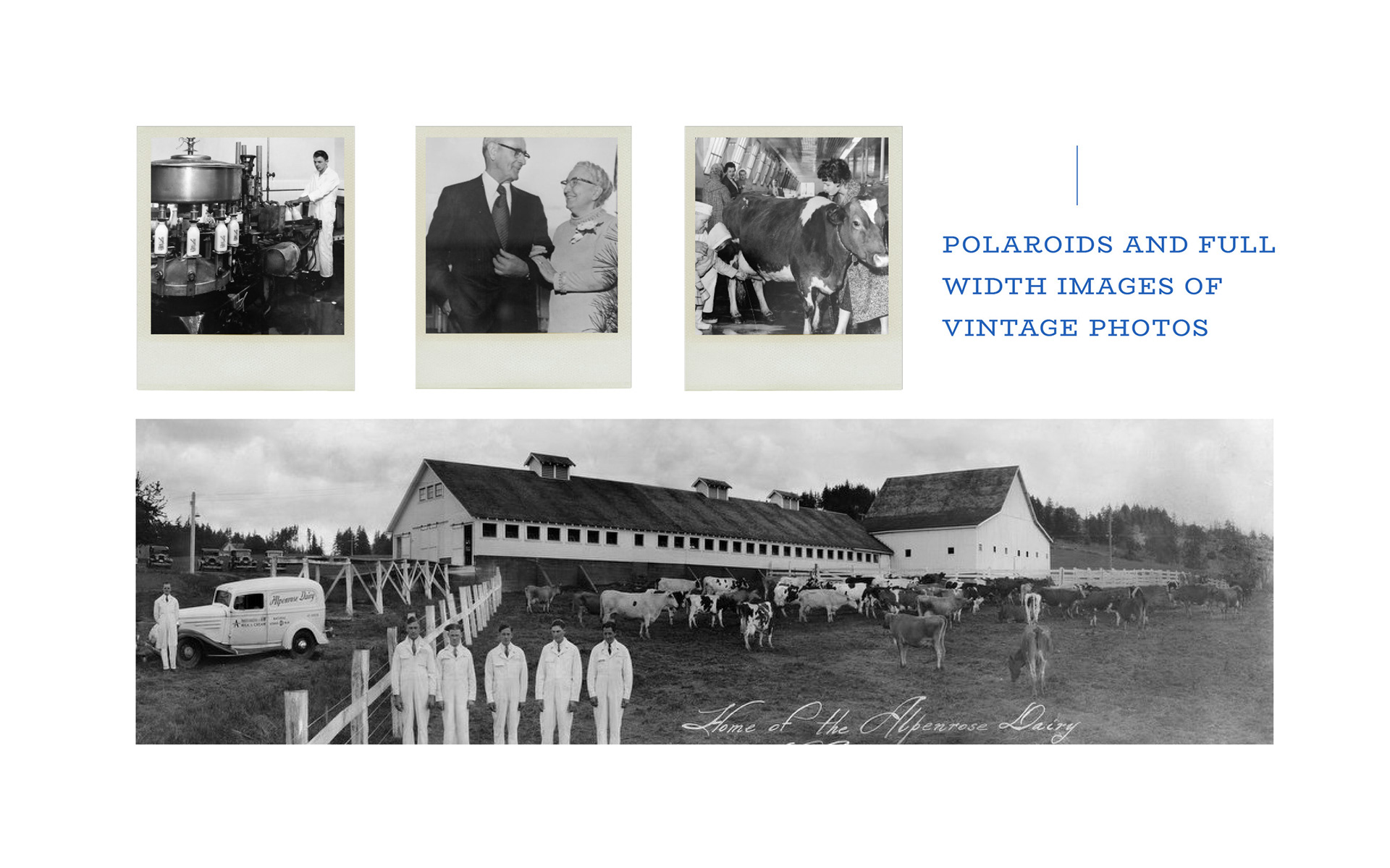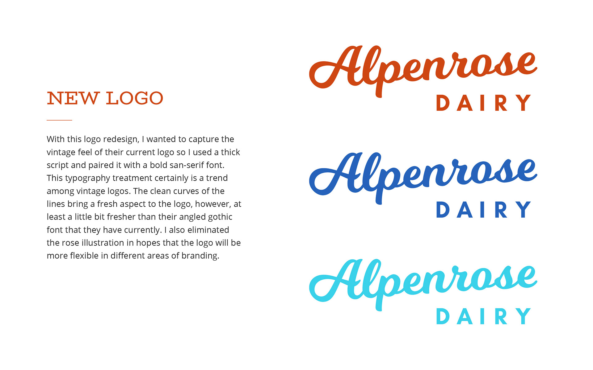 Alpenrose Dairy is a local dairy company in Portland, Oregon. This project rebrands their current look to give them a more updated feel while also staying true to their rich family history and culture.